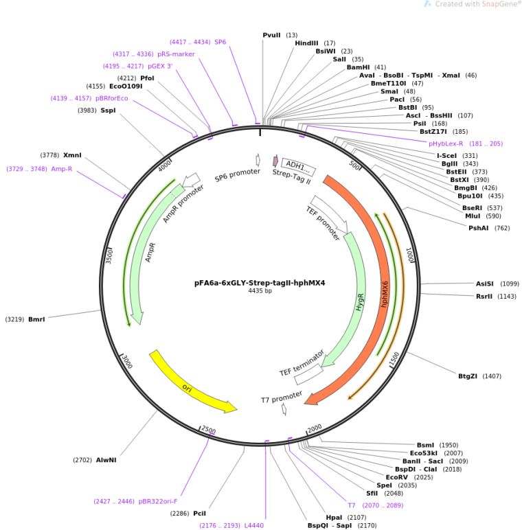 质粒名称:pFA6a-6xGLY-Strep-tagII-hphMX4
