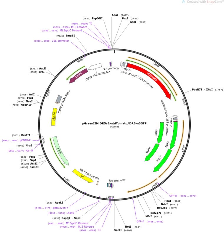 质粒名称:pGreenIIM DR5v2-ntdTomato/DR5-n3GFP